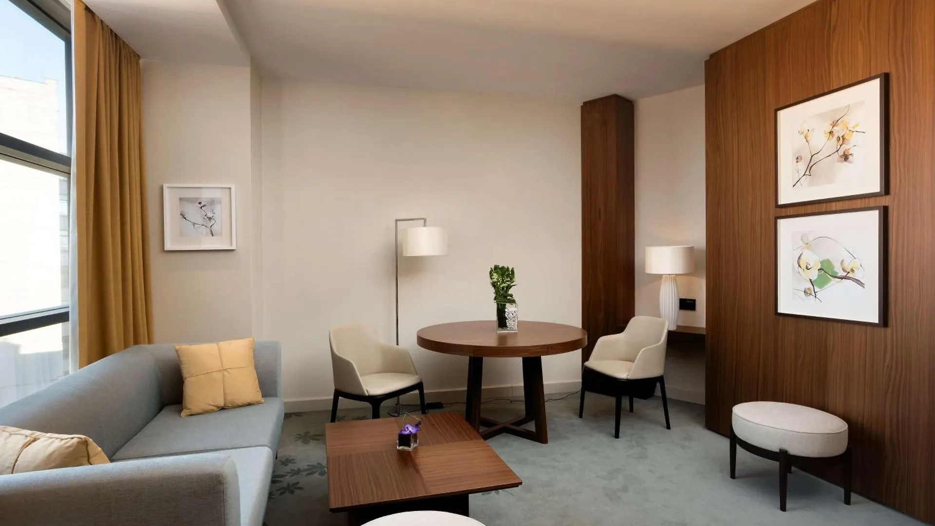 Furnished with a sofa set and a writing table, the 65 rooms also include such conveniences as a flat-screen TV with satellite channels, along with a minibar fridge. Bathrooms are fitted with a spa bathtub, a walk-in shower, and a separate toilet as well as hair dryers and bathrobes.