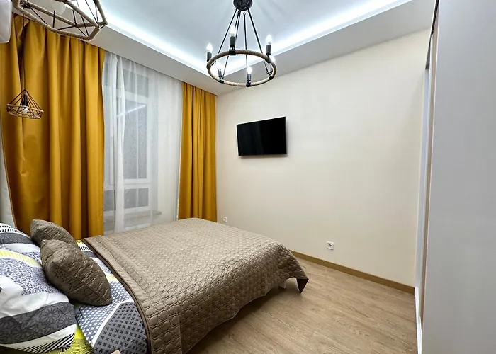 Die Gäste dieses Apartments können das Zentrum von Kiew in 25 Fußminuten erreichen. Goldenes Tor von Kiew liegt in einer Entfernung von 25 Fußminuten. In einer Entfernung von 150 Metern von der Unterkunft liegt Cup&Cake und Khachapuri and Vino mit einem guten Menü. NSK Olimpijskyj ist ein paar Schritte entfernt. Den Flughafen Kiew-Schuljany kann man in 15 Minuten mit dem Auto erreichbar.