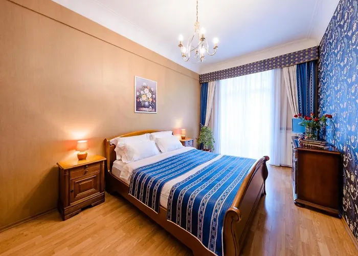 El lugar se encuentra en el barrio Pecherskyj de Kiev, en las inmediaciones de la estación de metro la Klovska. El centro de la ciudad se sitúa a 2 km y el Aeropuerto Kiev-Zhuliany está a 0,5 km. Se puede probar la comida mediterránea en Black Market Restaurant, que está a tan solo 5 minutos a pie del apartamento. Está a un par de minutos del Monasterio de San Miguel de las Cúpulas Doradas y cerca de The Uvarovs Mansion.