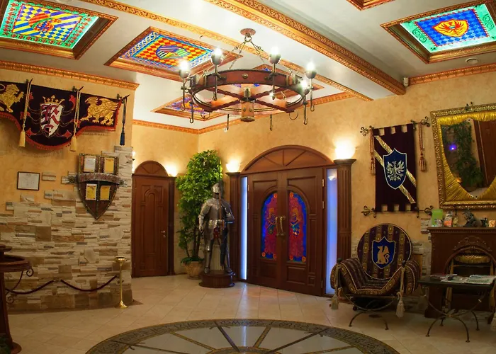 Situado a 2,6 km de la Puerta dorada de Kiev, el Kamelot Hotel ofrece aparcamiento de autoservicio gratuito, un baño de vapor y una piscina. El Parque zoológico de Kiev está a 5 minutos en coche de Kamelot Hotel.