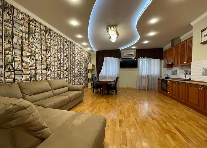 El apartamento está situado a 1,2 km del Arco de la amistad y a unos 3,6 km del Monasterio de las Cuevas de Kiev. El centro de Kiev está a 5 minutos a pie. A 125 metros de la propiedad se encuentran Lollipop Sweets y el Cafe Shtany, que sirven una amplia selección de platos. La Catedral de Santa Sofía de Kiev y el Kilómetro Cero de Ucrania están a poca distancia en coche.