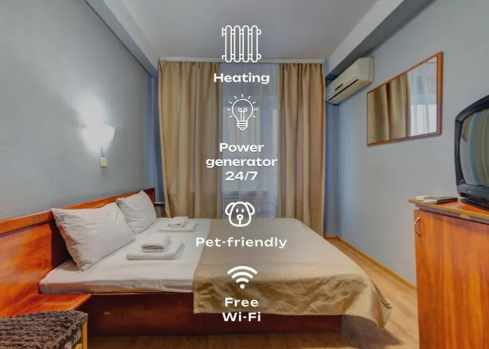 La propriété est à 25 minutes à pied du centre de Kiev. L'hôtel dispose de 30 chambres climatisées fournissant une micro-ondes, une bouilloire électrique et une verrerie dans la cuisine et une gamme d'équipements modernes. L'Université nationale des technologies et du design de Kyïv est également à proximité.