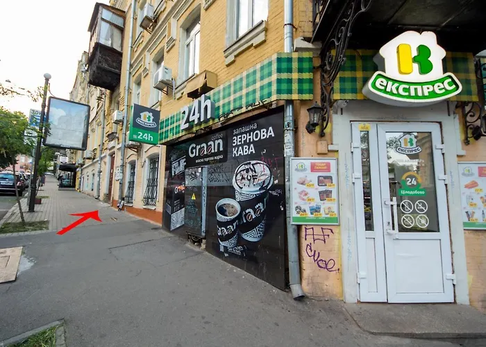 L'appartement est situé à environ 10 minutes à pied de la Maison aux Chimères, et à 750 mètres de Descente Saint-André. À 5 minutes de marche de la station de métro le Maidan Nezalezhnosti, il est facile de se rendre à la Place de l'Indépendance dès l'appartement. Le quartier offre des choix de restauration, comme Coffee Mastery et Spotykach à 200 mètres du lieu. L'appartement bénéficie de la proximité de Monastère Saint-Michel-au-Dôme-d'Or.