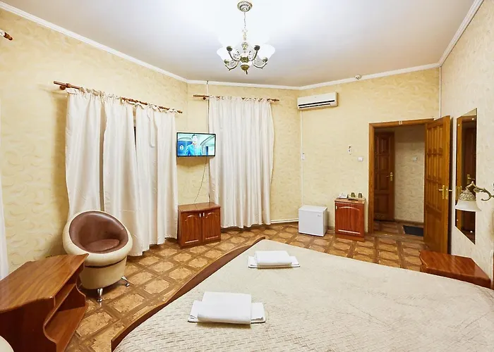 Located a few minutes' drive from Dnieper River, Hotel Barbaris Kiev offers 29 bright rooms. Su-100 is 3.7 km from the venue and the landscape-recreational Hydropark is 1.9 km away.