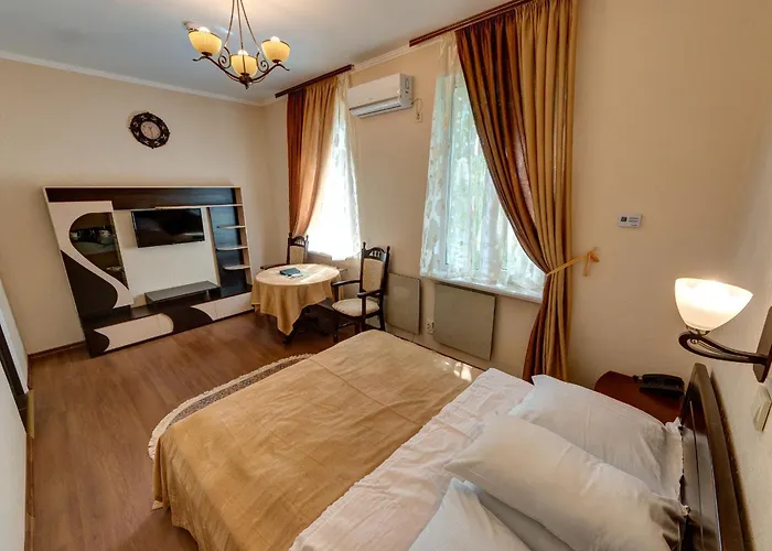 Affacciato sulla terrazza, Bogdan Khmelnytskyi Hotel si trova a 25 minuti a piedi dalla Piazza dell'Indipendenza di Kiev. L'hotel unico Bogdan Khmelnytskyi Hotel Kiev invita gli ospiti ad alloggiare in una di 20 camere climatizzate e a usufruire di un parcheggio gratuito e di un ristorante.