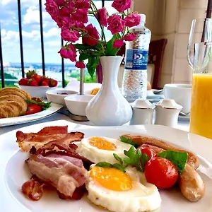 Offre delle camere con le viste su fiume Dnipro.