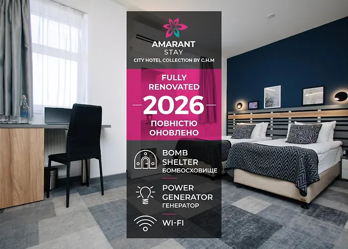 Amarant Hotel è situato in una zona turistica di Kiev e dà l'accesso alla Piazza Kontraktova che si trova a circa 25 minuti a piedi. Questo hotel grazioso offre reception 24 ore, servizio auto e servizio di concierge che sono forniti dal personale desideroso di rendere un buon servizio per garantirvi un soggiorno confortevole.