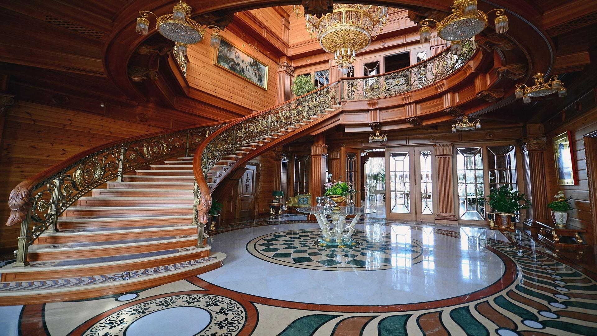 - The bathrooms in the main residence feature gold-plated fixtures and marble surfaces, with some toilets estimated to have cost over $40,000 each