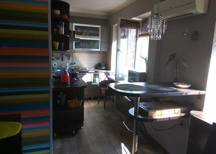 Comnata V Dvuhcomnatnoy is een appartement van 20 m², gelegen in de Pecherskyj wijk op loopafstand van15 minuten van Vladimirkathedraal, en het is goed geschikt voor maximaal 2 gasten. Deze 1-slaapkamer woning heeft een vlakscherm TV met satellietkanalen, een balkon en een elektrische waterkoker in elke unit.