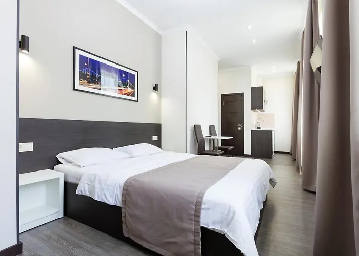 Otel Apartments Kiev in de Obolonskyj wijk is voorzien van gratis parkeren en een restaurant en bevindt zich op 6 km afstand van St. Cyril-klooster. Televisietoren van Kiev ligt circa 7 km verderop.