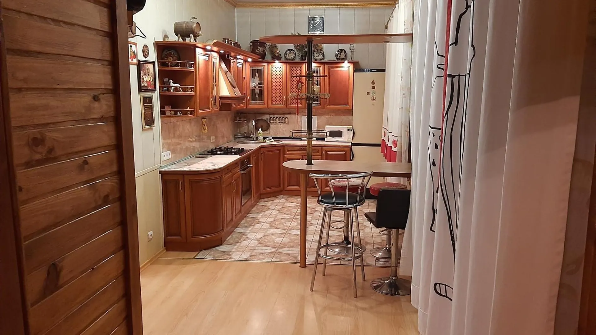 Holiday Home At Fedkovycha St. van 65 vierkante meter ligt op slechts 15 minuten rijden van Watermuseum en het duurt 15 minuten om de luchthaven Igor Sikorsky Kyiv met de auto te bereiken. De villa van 65 m² is voorzien van een kleedruimte, een bank en TV met satelliet zenders op de kamer.