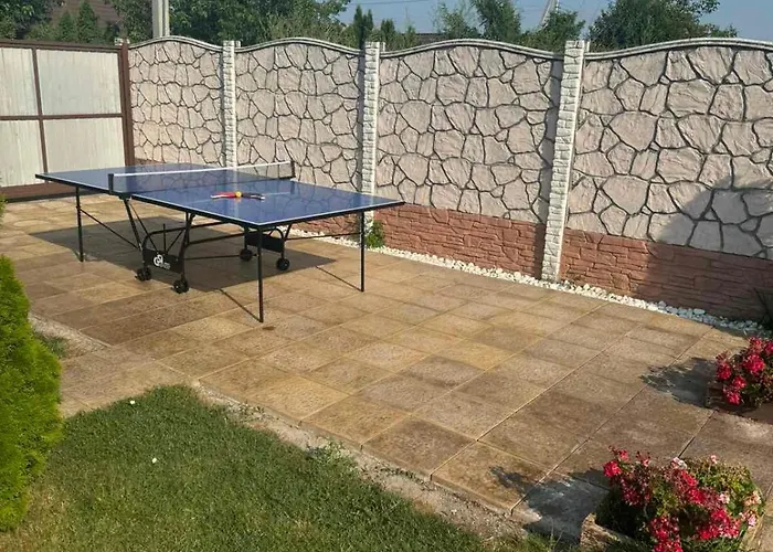 Dom S Basseinom I Sauneu Villa is situated 3 km from the centre of Boryspil and features a terrace fitted with a swimming pool. Extras include a refrigerator, an oven, and kitchenware in an equipped kitchen and a bidet, a separate toilet, and a bath in a bathroom.