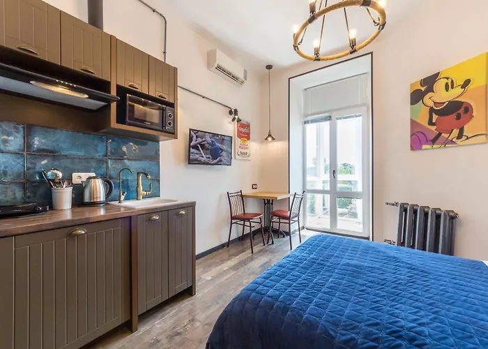 The property in Shevchenkivskyj, which is a busy hub with student bars, elegant restaurants, and art galleries, plus produce stalls at vast Bessarabsky Market, is set within 5 minutes' drive of Bessarabsky Market and a walk from such shopping venues as Maidan Nezalezhnosti. The nearby sports attractions include Olympic National Sports Complex, 5 minutes' drive from the Secret Kyiv.