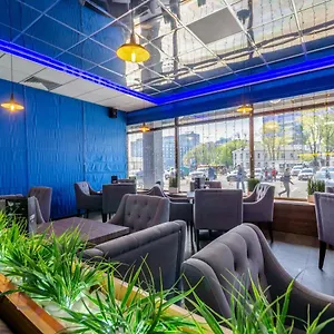 In the morning, a buffet breakfast is served at the in the restaurant. Guests can enjoy European, Japanese and Asian meals at Eurasia at Livoberezhna within 5 minutes' walk of the hotel. The lounge bar offers soft drinks together with a spacious terrace and a lounge.